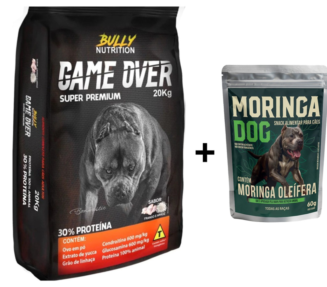 Ração Para Cães Adultos Game Over 20Kg + Ganhe Moringa Dog 60g
